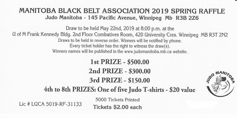 Thank you to our prize sponsors: Brian Jones Miguel Rueda Moe Oye Inner City Judo Club Nakamura Judo Club Selkirk Judo Club St. Boniface Judo Club West Kildonan Judo Club Prize Winners: 1st Prize: $500 – Ticket #2512 2nd Prize:…